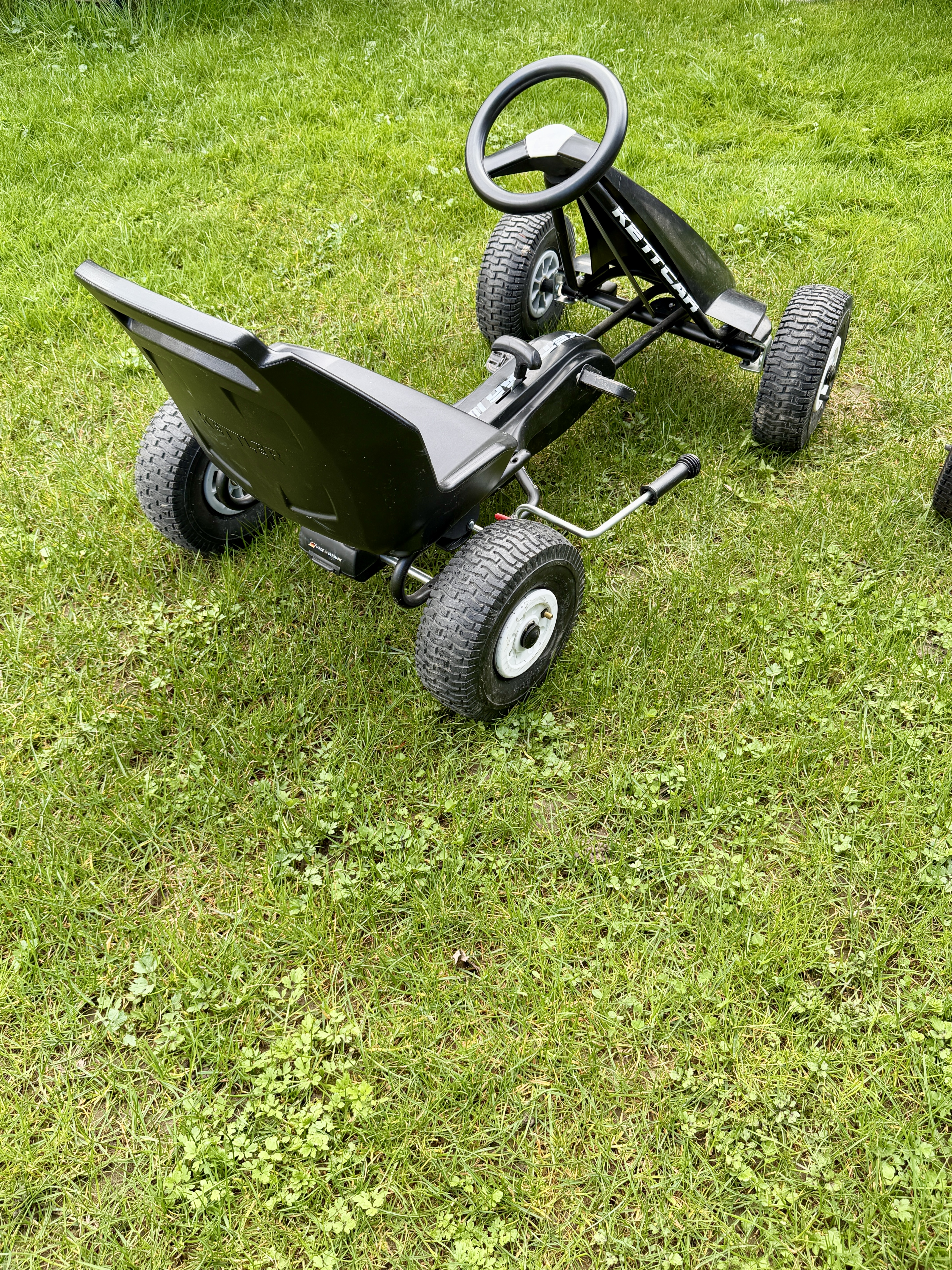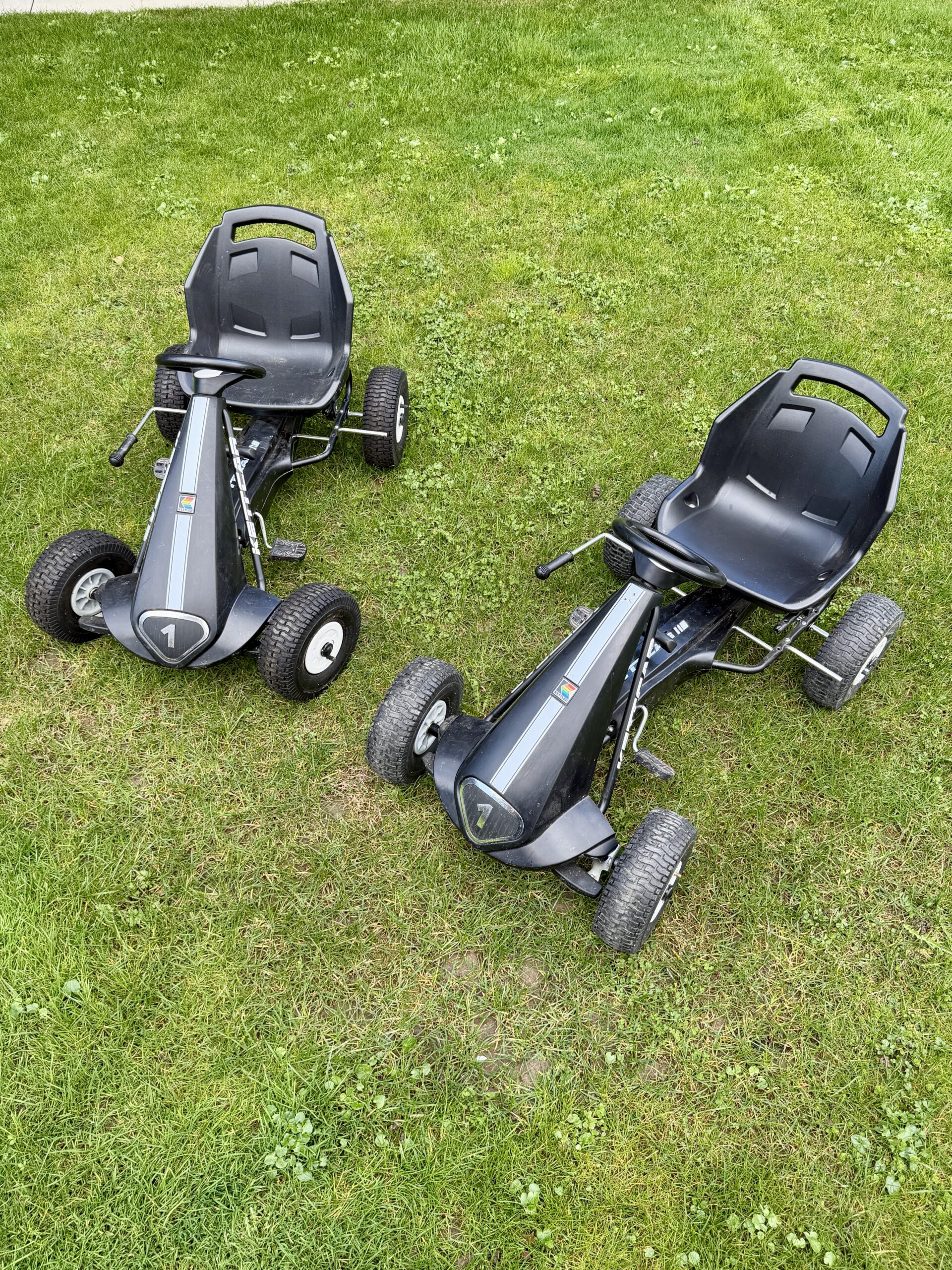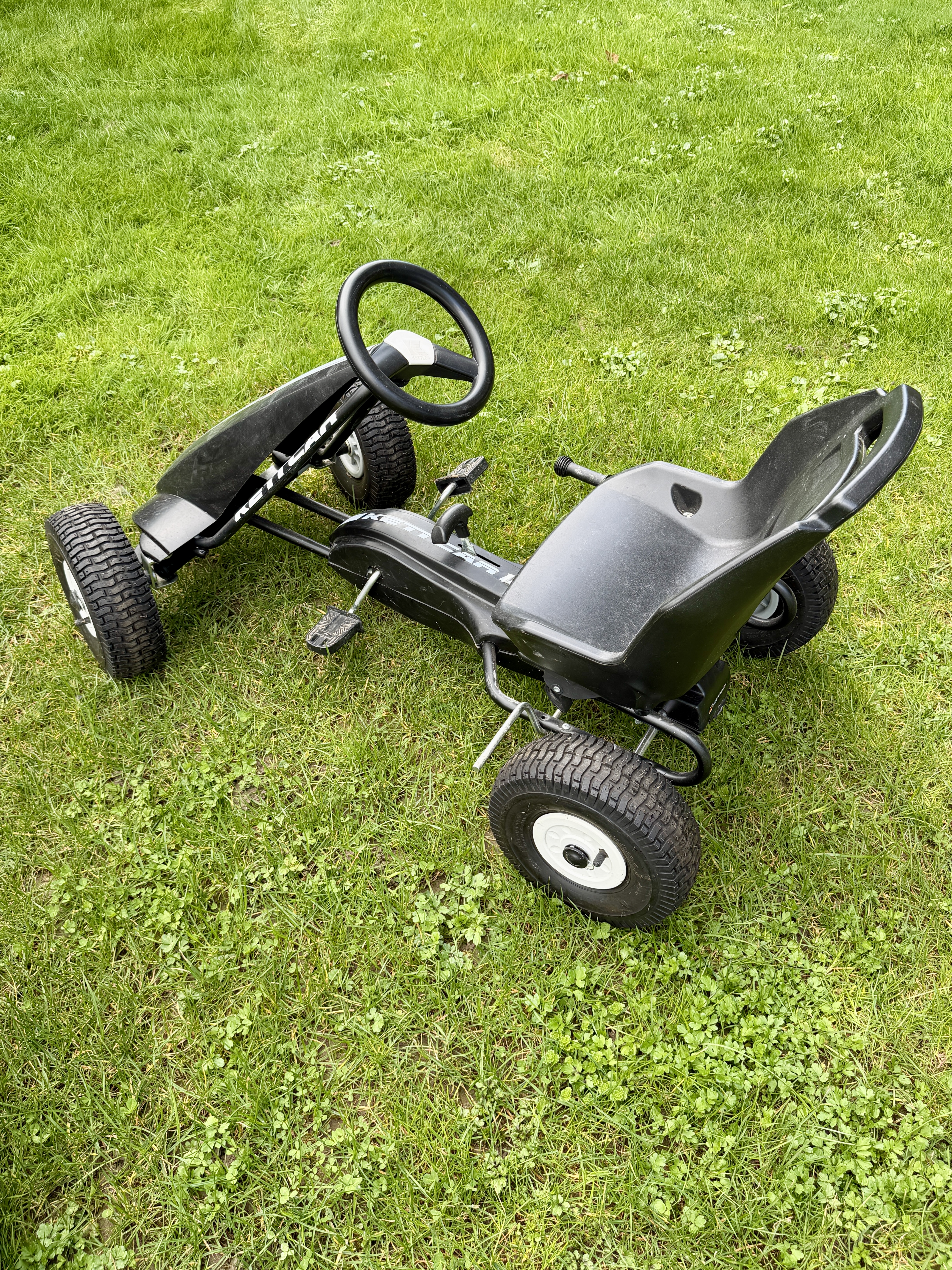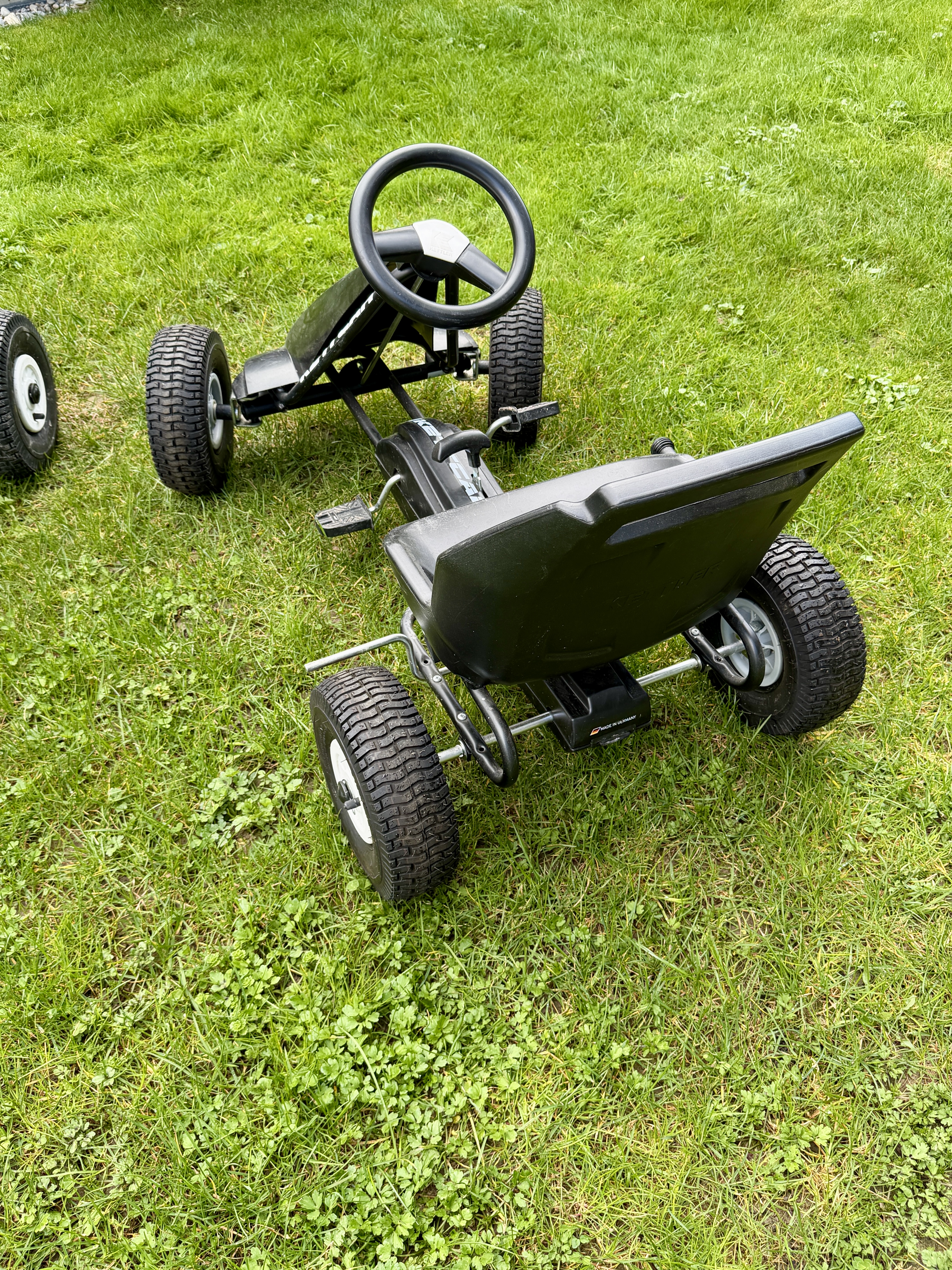Die beliebten Kinder-Gokarts sind robust gebaut und sorgen dank Luftreifen und verstellbarem Sitz für viel Fahrspass.